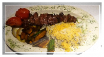 Vegetarian Kabob served with Saffron rice topped with almonds, pistachios,