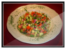 Diced tomatos, Kirby, green peppers, red onion, fresh mint and parsley, tossed with extra virgin